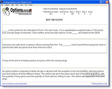 Options Lexis is options made easy - Options Lexis is an easy to use, yet extremely powerful, award winning options trading learning tool that will guarantee that you completely and confidently learn the language of options trading. With Options Lexis you learn all options terms found in an options glossary or options dictionary. Options Lexis: Options Trading Made Easy. Similar Software