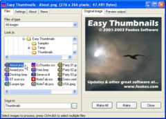 Easy Thumbnails is a genuine freeware product that will not annoy you with advertising, intrusive spyware components or nag screens. It comes from Fookes Software, developers of the award-winning NoteTab text editors and other high-quality applications.