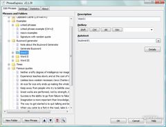 Powerful macro functions can add dynamic contents to static phrases such as the current date, counters or additional manual input. Phrases can be linked or nested. Macros can also launch programs or open documents triggered by shortcuts. Entering 'calc' may open the Windows calculator program or pressing the hotkey CTRL-F8 may offer a Google search query of a highlighted text on-the-fly.