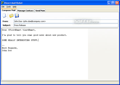 Freeware, compact, fast and easy-to-use mass emailer and email list manager. Direct Mail Robot allows you to send personalized emails to your customers, subscribers and friends. You are also be able to manage mailing lists with our handy tool.Do you need a really useful email marketing software? Try Direct Mail Robot. It is ideal for newsletters, targeted marketing, and keeping in touch with clients.
