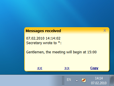 Winsent Innocenti uses standard SMB protocol and can receive messages sent with Winsent Messenger, net send command (Windows Messenger Service), Microsoft Winpopup. It does not require a dedicated server or an internet connection. The program has simple, handy and easy-to-use user interface. It is a compact program with low system requirements. The program designed to be used in small or medium-sized office or home local networks.