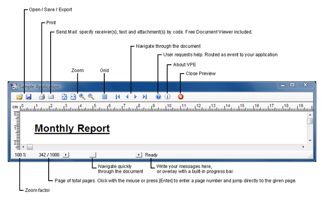 Windows Version: Built-In preview, e-mail functions and printing (printer independent exact positioning, which is ideal for forms).