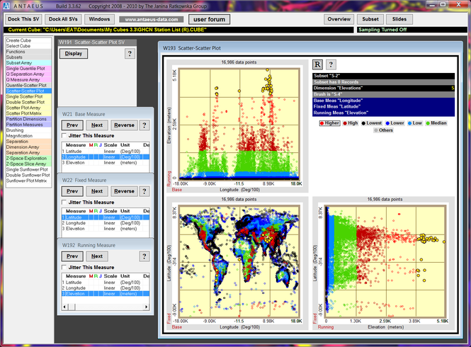 Antaeus is a utility that provides a simple way to explore data plots that can be used to confirm or deny the merits of statistical analyses. Most of the data plots thus explored can be saved as metafiles which can be published using word processing and desktop publishing applications. Antaeus is not used merely to draw a plot, however. It can be used to delve into and explore the universe of your data in a way that keeps you completely oriented. In Antaeus, the scatter plots become unto themselves a world of navigable data visualization.For a more complete overview, including screen shots, please visit http://antaeus-data.com/concepts/about.html