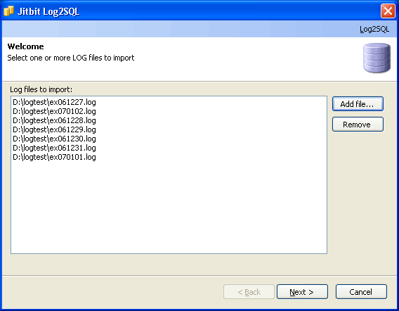 Log2SQL is a program that imports (converts) web-server logs into an SQL-database. Both W3C and NCSA web log formats are supported. After importing it becomes extremely easy to perform complex queries and searches with your logs, and finally, analyse your web-site statistics more efficiently.Log2SQL offers two options of converting logs to SQL: 1) Import data directly into an existing Microsoft SQL Server database using the built-in native MS SQL support 2) Generate SQL-insert scripts which can be run against any other SQL-database (MySQL, Oracle etc.)