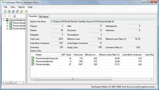 OxyProject Metrics is an application that provides code metrics for software projects empowering software professionals to assess the complexity and maturity of a software product.The source code can be loaded from a .NET solution, a C# and VB.NET project or folder.