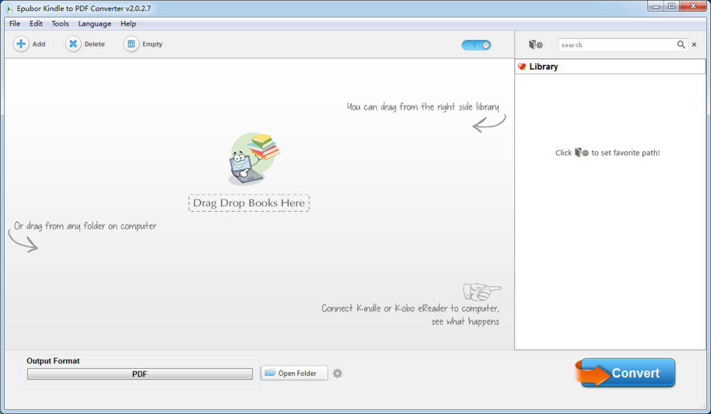 User-friendly interface and Easy to use. Only two steps, straightly drag and drop or manually add eBooks from your PC into this awesome program, then click the "Convert" button to get the converted eBooks.