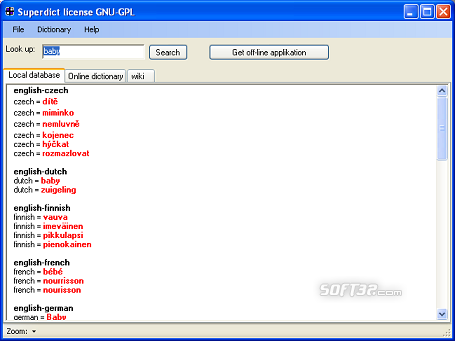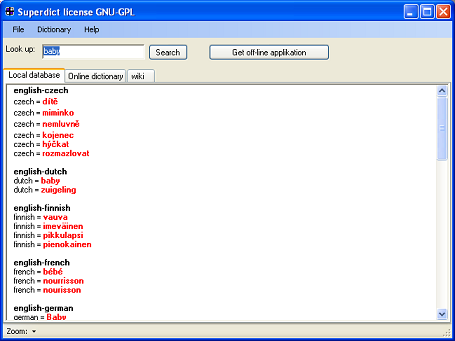 These applications allows you to look up words in many dictionary databases. Special feature of this program is online look up. Keywords are found in dictionary database on the server and results are displayed in the application. Similar Software