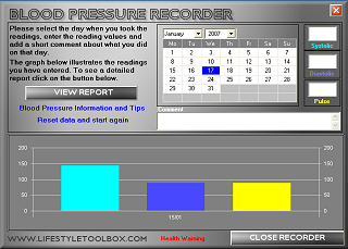 Record your daily blood pressure measurements using this fast and easy freeware program from Lifestyle Toolbox. From the detailed report of your measurements, you and your doctor can assess if you have high blood pressure and perhaps the causes. Similar Software