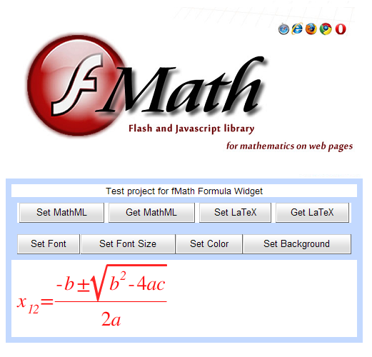 fMath Formula - GWT Widget provide a simple way to display equations or mathematics formula on your GWT applications (Google Web Toolkit). It has more than 20000 symbols to display using MathML or in LaTeX. The widget is free of charge to use and to distribute. Similar Software
