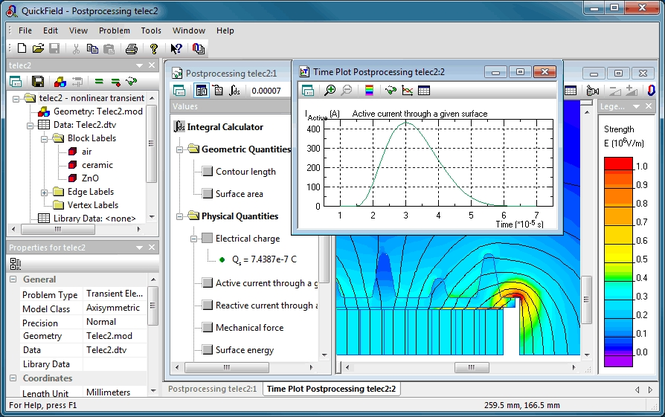 QuickField is a Finite Element Analysis package for electromagnetic, thermal, and stress design simulation