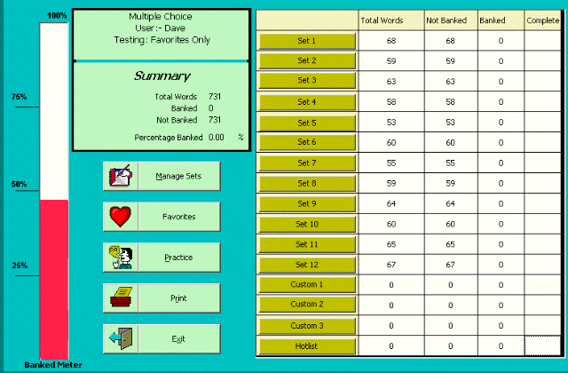 WordBanker is a unique method of helping you to improve your English Vocabulary.Do you have trouble memorising new words or phrases ? WordBanker's "Visual Clue" method of testing means you learn without even realising it. The program comes with approximately 2700 words and you can add as many as you like as well as create your own categories