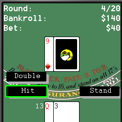 In wapfrog.com free blackjack your aim is to gain the highest bankroll while getting the closest to 21 and not passing it. Our rules are: Dealer hits on 16 and stands on all 17, Blackjack pays 3 to 2, insurance pays 2 to 1 and costs exactly half your original bet, double is for the exact bet amount, no split. We also round any cents for "real estate" reason on mobile devices. Wapfrog.com blackjack offers online high scores.