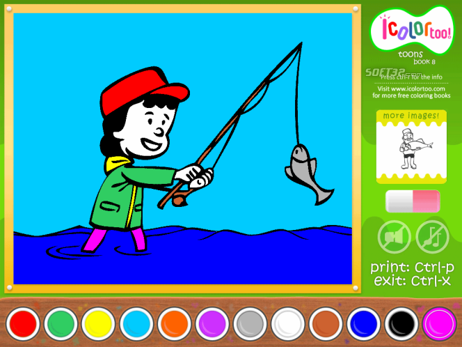 IColorToo coloring books are exciting coloring software for children. The books are parents-friendly as well as software spreads over the whole screen and exits on certain double-key shortcut combination only so there is next to nothing chance that a child will jump into operating system and ask a parent for assistance. All images are exclusive for IColorToo books. IColorToo: Toons 8 book contains 25 images. Similar Software