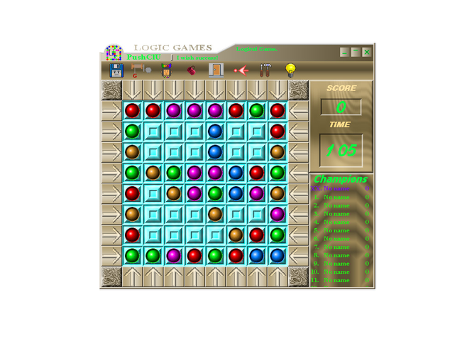 In PushClU game, as well as in life, for achievement of the aim it is necessary by something to offer, here free space of a field. Those will come to a victory, who correctly will estimate result and degree of a sacrifice. The game can be related to a classical type of games, but with original rules. The aim of the game is the deleting from a field of multi-coloured blocks, placedon it. The clearing is carried out by moving (pushing) of blocks so that in one or several directions, (line, the column or diagonal) has appeared four, five or more blocks of one colour. In this case line, column, diagonal or all together will disappear. The moving of blocks is executed by pressing of buttons located on perimeter of a game field. At each pressing all blocks in a line or column are displaced on one crate of a field, and in a released crate the new block is located. The moving is made only in that case, when in a line or column there are empty crates. Thus, each course reduces free area of a field, and the deleting of blocks increases it. At each deleting of blocks your score is increased. The game proceeds while on a field there are free crates. On our site you can download "COLLECTIONS" of games. Their registration is made for all games of collection simultaneously and costs cheaper - up to 4 dollars for game.