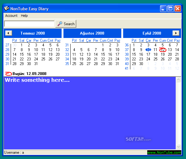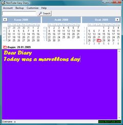 Write your memories or appointments with ease. Easy Diary saves your data only in your own computer and helps you keep them private. This program is multi-user supported. Every single user unlocks his/her data by using his/her password. You can search your data. Interface is customizable. Backup import&export is provided.