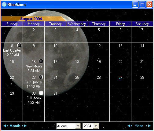 A nifty and free basic Moon Phase Calendar application which resides in your system tray. Enjoy! Similar Software