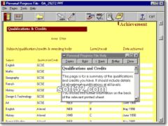 Personal Progress File (PPF) is designed to assist in the creation, maintenance and printing of portfolios for the United Kingdom's National Record of Achievement. It isupremely easy to use, having been designed for use by complete computer novices. It isn't even necessary for users to save their files, it is done automatically. In fact this software is loaded with failsafe features to prevent loss of data. Other easy to use features include a spell-checker and a print-preview display. A key feature of the software is its ability to automatically format and print correctly on the official pre-printed NRA sheets.This personal edition is available free for home use. Another version is available, designed for use in multi-user environments such as schools, colleges and training sites in the UK. The files created in either version are completely interchangeable so, for example, users, having prepared a file at school can take the file home on floopy disk and edit it there with the free software, or vice versa.