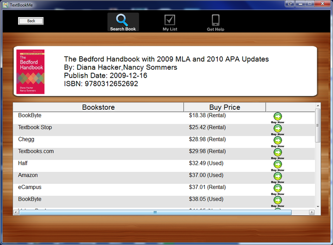 Getting cheap textbooks should be the goal of every college student. With TextbookMe Windows edition now every student can get their textbooks at the lowest possible price. Simple enter a textbook title, author, and/or ISBN and we'll show you how much that book costs at all the online stores in seconds. It's the perfect way to compare textbook prices right from any Windows PC.Over the past 12 years we've saved students millions of dollars on their textbooks. With the wide variety of online stores to buy your textbooks from, TextbookMe makes sure you are getting the best deal on your textbooks and have cash left over for everything else in school.