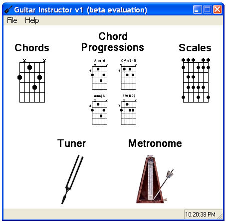 This Application helps guitarists with chords, scale patterns and chord progressions. It also provides a simple note-based tuner and simple metronome. At the moment this is a very basic application but we plan to add a whole lot more to it. Some of the things we plan to add are more tunings, lessons, and some more useful tools to help out any guitarist. Similar Software