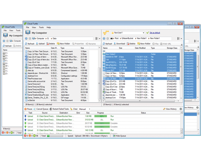 Completely FREE Cloud File Explorer: Amazon S3, Nirvanix, Timeline Cloud. Cloud Turtle can multi-task operations such as upload, download and delete. It has a simple, dynamic user interface that can be changed to your preferred layout, it throttles bandwidth, contains a complete history log, has auto retry of failed tasks, and can pause and resume uploads and downloads. Cloud Turtle is super fast, super easy, feature rich and completely free.Cloud Turtle connects you to three different storage services: Amazon S3, Nirvanix and Timeline Cloud. Each service has specific features to help easily access all of your data stored in these locations.