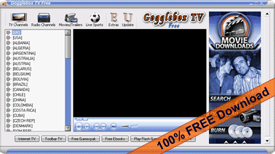 Dont pay silly money for Satellite TV on PC services, 2000+ TV Channels for Free on your PC + free Lifetime updates. Now!.. Gogglebox TV™ software is New and Updated Jan 2008! with Superb FREE Bonus items. A Simply UNBEATABLE Deal!WORKS WITH ALL VERSIONS OF WINDOWS (95, 98, NT, ME, 2000, XP).