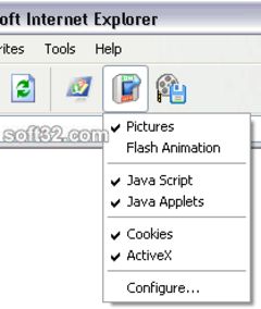 Flash and Pics Control is an Internet Explorer add-on that allows you to easily enable or disable Flash, pictures, cookies, java script, java applets or ActiveX right from Internet Explorer. Having Flash and pictures disabled lets you reduce the amount of incoming traffic and, thus, saves you money. Disabled Flash animation (mostly, advertising) will also considerably reduce a web page loading time. Disabling java script, applets, cookies and ActiveX will make Internet Explorer less vulnerable when visiting web sites you don't trust. Similar Software