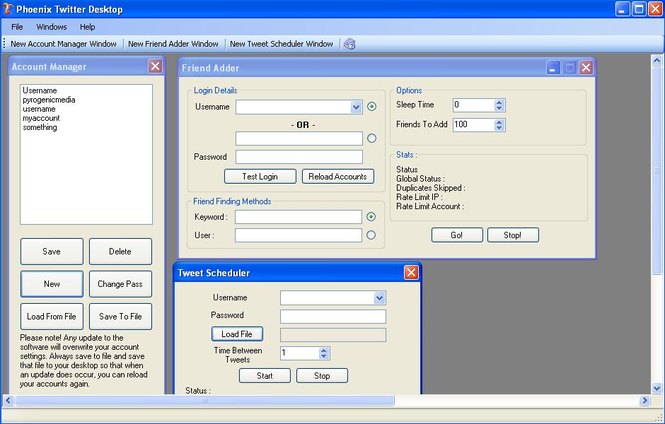 Twitter Desktop Includes a Twitter Friend Adder and Tweet Scheduler for automating many many twitter tasks. Similar Software
