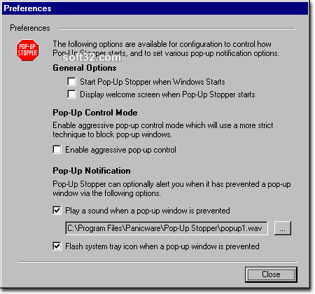 Block Netscape, Internet Explorer, Mozilla and desktop pop-up windows with the latest upgrade of this small tool, now with added support for Mozilla, and new technology to block annoying Messenger Service and GAIN adserver desktop ads! No need to adjust proxy settings, or add sites to a list. Pop-Up Stopper will not strip web images or slow your browser. You can allow pop-up windows only when you want them! User settings allow various pop-up notifications, such as a flashing icon or new, fun sounds. Simply hold down Control (CTRL) or Shift key to allow selective pop-up windows, but most new links should now open automatically! Pop-Up Stopper is not advertising supported, nor does it require registration, and no information is collected from or about product users. Pop-Up Stopper is very small, and easy to use. Complete with full Install and Uninstall, and a complete setup wizard and online help file, and free unlimited tech support.The latest version includes automatic updates, new ad-blocking technology, easier user interface, more sound and visual notifications to play when an ad is blocked, and a full online help database.