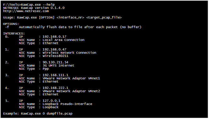 RawCap is a free command line network sniffer for Windows that uses raw sockets.Properties of RawCap: