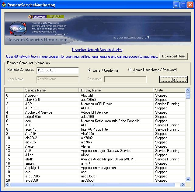 Services are critical system components. Running in the background, they are widely used in the operating system to control hardware, monitor applications and support all system level functions. RemoteServiceMonitor controls the status of your network services and allows to start or stop remotely. You must have administrative privileges on the network computer. All the mentioned features are provided with a user friendly graphical interface. Similar Software