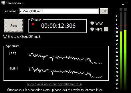 Streamosaur is a direct to disk recorder application, it records and encode in real time, it features a timer to select the hour and duration of your recording.Save as wav or mp3.