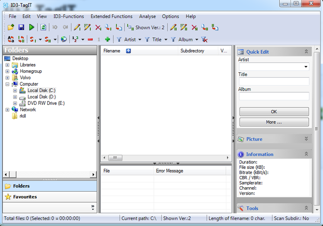 ID3-TagIT is a programm for editing, adding, or deleting ID3 TAGs in MP3 files. Single file and batch editing are both supported. Edit one, ten or all your MP3 files at once. ID3-TagIT has many functions to help you achieve your goal as quickly as possible. ID3-TagIT is - in contrast to many other editors - able to read information from the directory structure and put it into the TAG, organize files into folders, handle several comments and genres in the ID3V2 TAG, and every function is available for ID3v1 and ID3v2. For detailed information go to the features descriptions. Similar Software