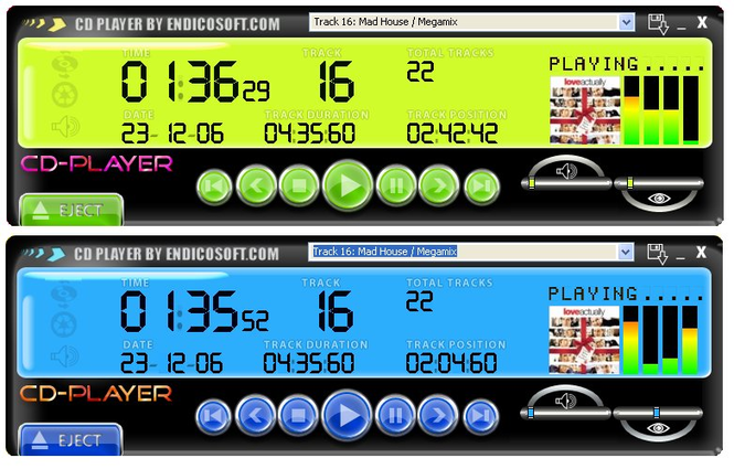 CD-Player from Endicosoft.com plays your collection of CDs, shows you the Album title, song titles and Cover image. The track information on your CDs is indexed automatically and tracks can be played sequentially or randomly. It sports an excellent Interface and eay to use features:Features include: