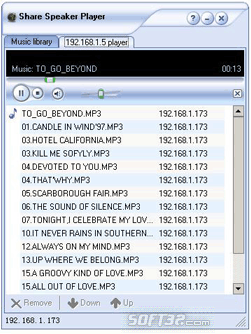 Multiple Computers Share Speakers is freeware, save your money and space.Share Speaker Player is an outstanding yet easy-to-use application to manage music and share speakers over network with high quality. This software allows you sharing songs resource and remote control the playlist. You can choose to play songs on local computer or other computers with speakers. You can add your songs to the shared playlist and reorder, remove songs, control the volume of sound, and so on.