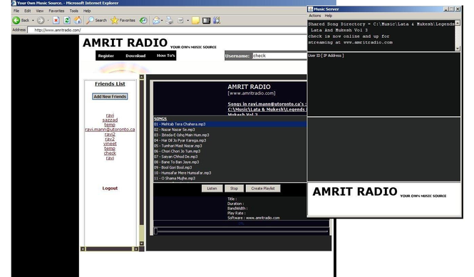 Amrit Radio - Your own music source. Listen to the songs stored in your computer from anywhere ! Three Simple steps : Register - Login - Listen .