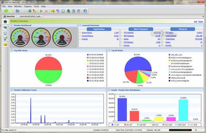 AthTek NetWalk Personal Edition is the ONLY professional free packet sniffing and network monitoring software for home network management. Even you are not so familiar with network management knowledge, you can still easily handle it with the graphic interface. Most of the key items in network management have been preset as default main instrument panel for you can easily know the network status at first glance. In the new edition it includes Wireshark for better traffic analysis performance. and most important of all, it is still totally free for use.AthTek NetWalk has a flexible graphic interface which is very straightforward for you to understand the network status. It enables you to trace route from those charts to the traffic source as interactive navigations. It support almost all kinds of network protocols even the IPv6, what is other not supported by other packet sniffing tools. Built-in traffic filter models enables you to easily identify intrusions and cut off them from access. If you have no idea about those elusive traffic data in packet sniffing, it doesn?t matter. AthTek NetWalk will convert the traffic data into traffic map for you, and you are able to know all the communication details with the communication path diagrams.