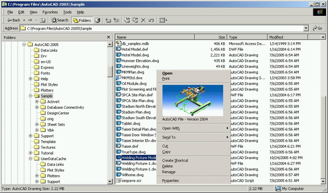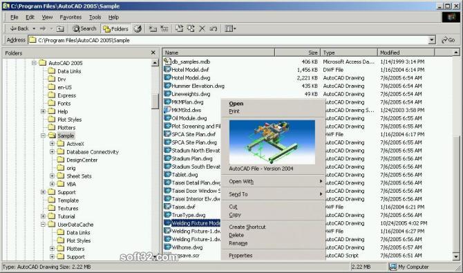 AutoCAD Version-Preview-Information (AcadPVI) is a dll that adds the AutoCAD preview and version to the right-click context menu in Windows Explorer. Features:* Display preview images (v13, 14, 2000/2000i/2002 & 2004/2005/2006)* Display version (v2.5, 2.6, 9, 10, 11/12, 13, 14, 2000/2000i/2002, 2004/2005/2006)* Display preview and version information for all AutoCAD files (.dwg, .dwt, .bak, sv$, etc) Similar Software