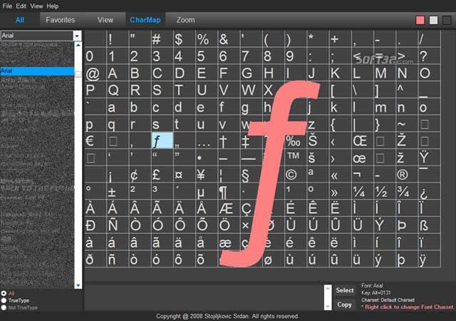 sFont is a simple and easy-to-use freeware Font Viewer. Along with standard options, like FontView, CharMap and Zoom, we added Favorites section for you to store your favorite fonts.Do you need to find perfect font for your project and fast? Do you have 500+ fonts and can't find exactly the one you need? Are you tired of spending money on expensive applications that are complicated to use and very slow? Now we are proud to tell you that your problems are solved! We present you sFont. Small, fast and easy-to-use, sFont will help you find exactly the font you need as fast as possible. User interface is so friendly and intuitive you will be familiar with all its functions almost instantly. Just try and see for yourself.