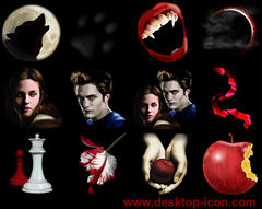 Free Twilight Desktop Icons is a collection of 12 free icons for personal and commercial use (software applications, websites, blogs etc.) representing various characters, concepts and symbols of Twilight Saga. The images are distributed under a Creative Commons Attribution-Share Alike license 3.0 (free for all, but a link to www.aha-soft.com is required).As well as all our commercial sets, these icons are carefully created pixel by pixel by the hand of an experienced artist. They present a bright palette of colors, smooth and well-rounded edges. The icons are available in sizes of 16x16, 32x32, 48x48 and 256x256 pixels. All images are in the 32-bit True Color format. The icon set includes images representing all 4 books of the Twilight Saga series (Twilight, New Moon, Eclipse and Breaking Dawn), main characters of the saga (Edward Cullen and Bella Swan) as well as other images (wolf, bite, full eclipse, wolf track, apple).