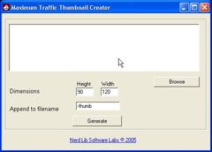 A very simple tool that will allow you to generate hundreds of thumbnails in seconds! You can download your 100% free copy at any time. Software Features: - 100% Free - Specifiy Dimensions - Custom Naming - Hundreds of thumbnails in seconds