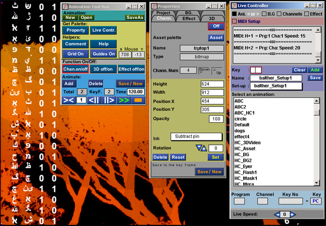 Balthers Graphic Groove Box is a VJ and Moving Visuals program for the professional digital artist, handling graphics, Flash, videos and 3D. PC key and MIDI control with interactive real time animated Effects.No installation required except of the Quick Time Player.