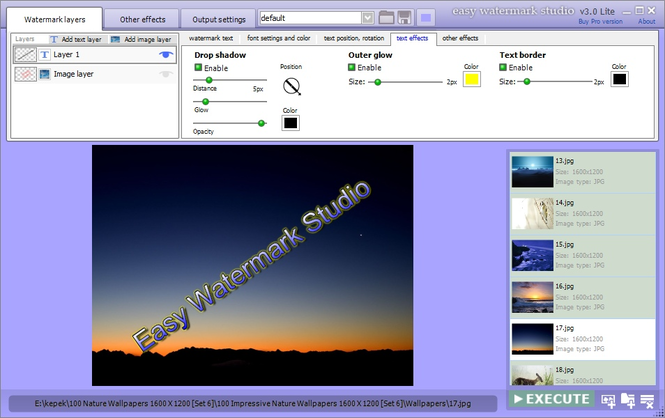 -Apply filters to watermarks : drop shadow, outher glow, alpha transparency