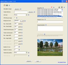 Rapid Gallery Creator is a program that allows you to easily build web galleries with just a couple of mouse clicks.- The only gallery builder program we know of that can embed created galleries into existing web pages and URLs!