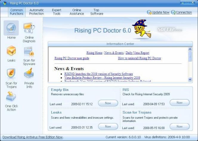 Rising PC Doctor, professional personal computer security untility, has seven key functions of automatic malware analysis, immunization of USB storage devices, ability to repair Microsoft Internet Explorer & Windows, Trojan Behavior Detector & Blocker, protection against malicious websites, Internet Explorer protection and Trojan Download blocker, will greatly enhance your protection against malware, trojan, viruses, and other malicious threats.Hightlights: