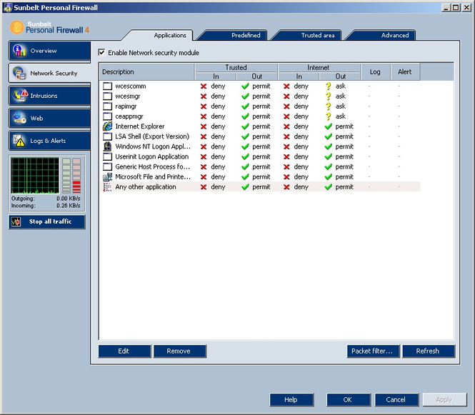 Protect yourself from hackers. Secure your PC with a 100% free firewall download. Sunbelt Personal Firewall (SPF), previously known as Kerio Firewall, was called "our favorite" by PC Magazine.The Windows Firewall (both XP and Vista) is worse than useless, it gives you a false sense of security. Why? It only filters incoming traffic. That means if malware has compromised your PC, it is able to send out all your personal info. That's right; the Windows "firewall" does not stop that!