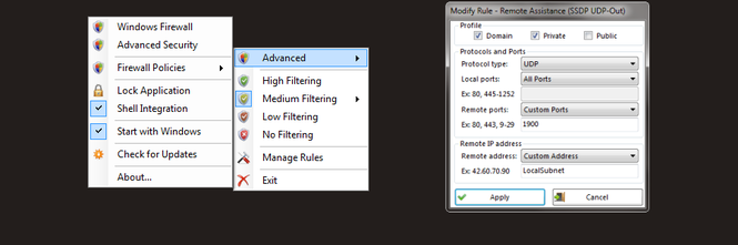 Product Overview? Windows Firewall Control is a nifty little application which extends the functionality of the Windows Firewall and provides quick access to the most frequent options of Windows Firewall. It runs in the system tray and allows user to control the native firewall easily without having to waste time by navigating to the specific part of the firewall. This is the best tool to manage the native firewall from Windows 7 and Windows Vista. Windows Firewall Control offers access to four filtering modes.