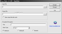 Choose from 45 types of encryption methods. Use these methods with keys you create to keep your data safe. Encrypt any sort of file on your computer. If you need it to be confidential simply "mash" it. Chaos Mash does not require installation, simply copy it to the hard drive or a removable USB device and run it from that location. Similar Software