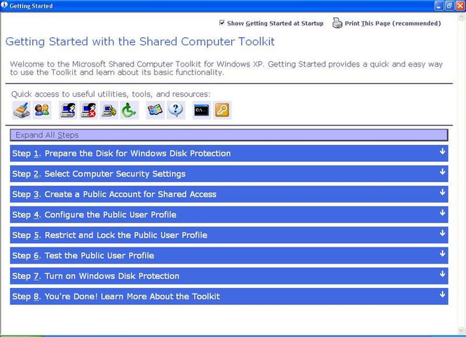 The Microsoft Shared Computer Toolkit for Windows XP provides a simple and effective way to defend shared computers from untrusted users and malicious software, safeguard system resources, and enhance and simplify the user experience. The Toolkit runs on genuine copies of Windows XP Professional, Windows XP Home Edition, and Windows XP Tablet PC Edition.