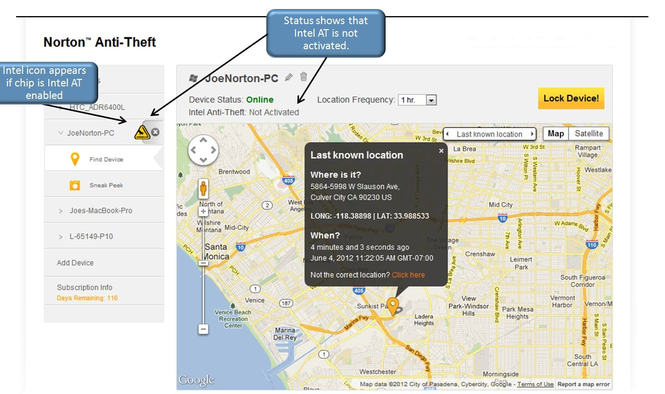 - Lets you easily locate and lock your PC, tablet, or smartphone from anywhere, right over the Internet through the Norton Anti-Theft website.
