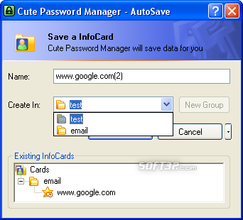 Cute Password Manager logs you into Web sites and fills forms faster, easier, and more securely. Cute Password Manager memorizes each user ID and password the first time you log into a site and automatically supplies them when you return. Cute Password Manager can help you secure your passwords from spyware, trojans, and Phishing. Cute Password Manager Key Features Include: -Memorizes all your passwords and logs you in automatically. -Saves & fills out web forms automatically. -Encrypts your passwords with AES algorithm into your local hard drive. -Backsup & restores your logins (InfoCards), so that you do not need to retype them when re-installing Cute Password Manager. -Automatic creation of InfoCards via flat file or Excel spreadsheet. -Generates strong passwords that hackers cannot guess. -Fights Phishing by filling passwords only on matching web sites. Cute Password Manager is easy-to-use, fast, and efficient. Try it! Similar Software